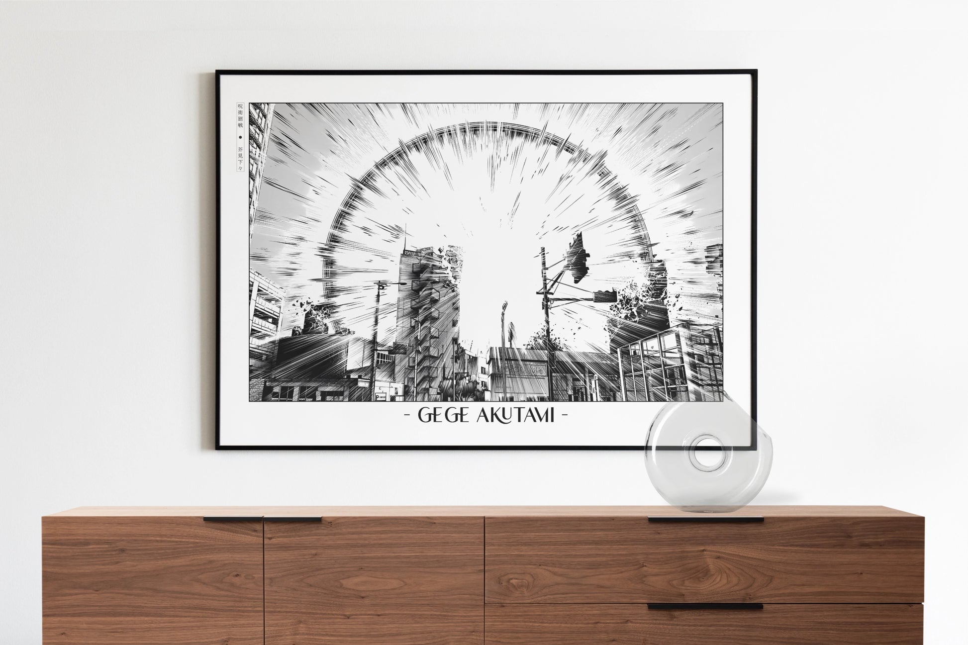 Harsh light and shadow fracture the composition, making this anime wall art an explosive symbol of Akutami's storytelling.
